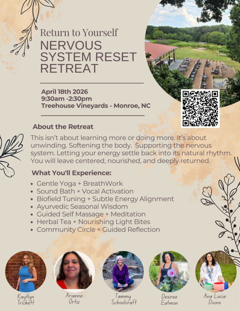 You will be held in the beauty of Treehouse Vineyards and guided through intentional practices that encourage grounding, coherence, and connection.
